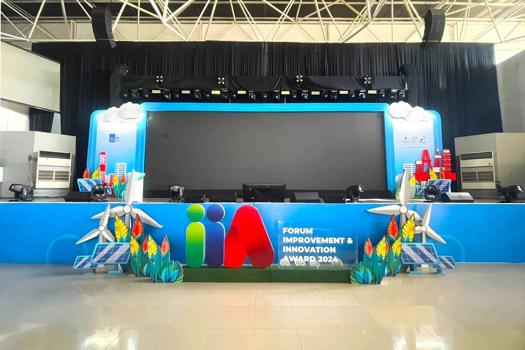 Dalam Forum Improvement & Innovation Award 2024 oleh Pertamina EP Regional Jawa di ITS Surabaya, Dus Duk Duk menghadirkan dekorasi berkelanjutan dari kardus 100% serat daur ulang. Panggung utama dan photobooth didesain khusus untuk menghidupkan tema “Driving Innovation: Pioneering Sustainable Energy and Community Development.”